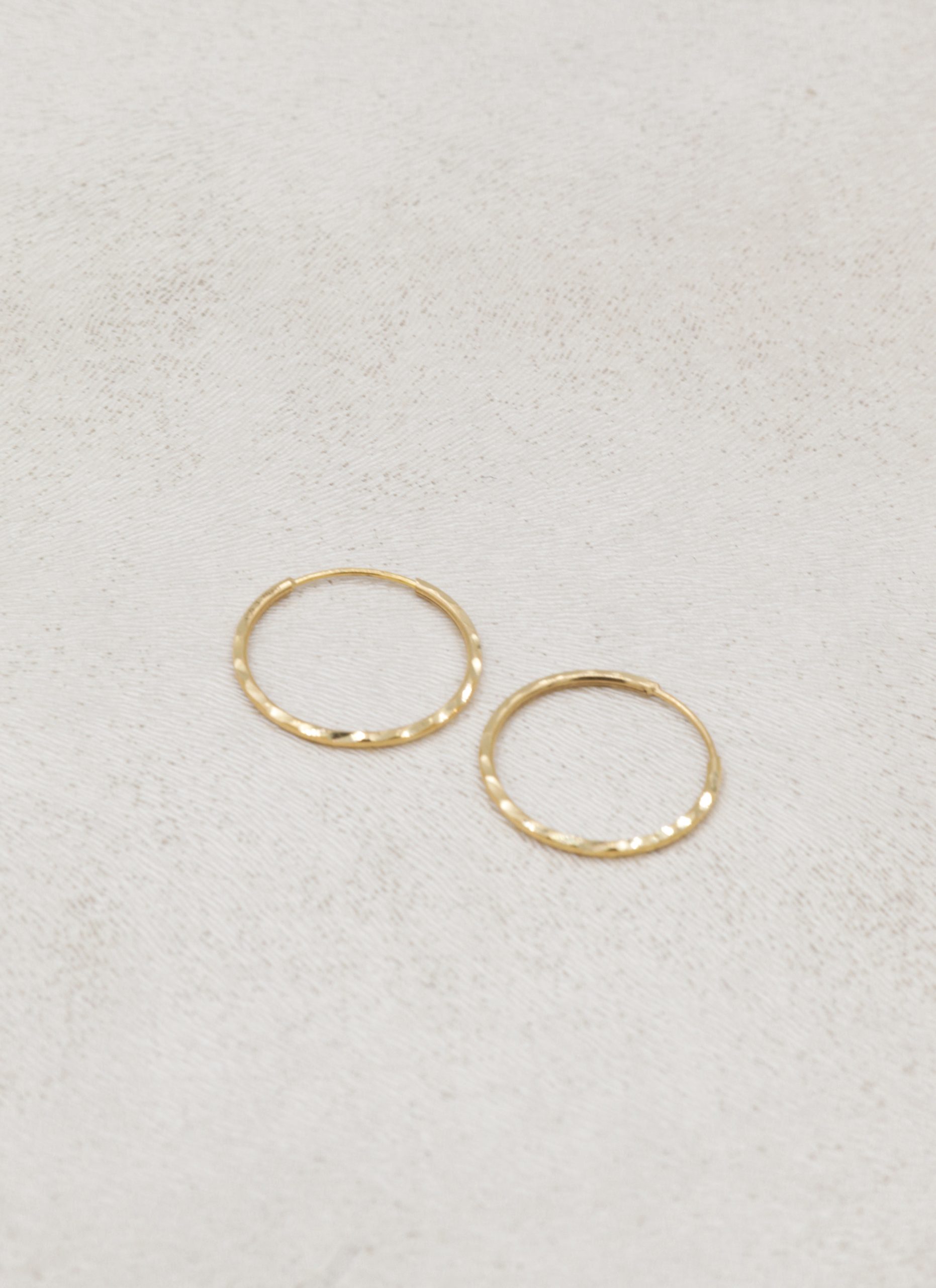 گوشواره های حلقه ای ساخته شده از طلای 18 عیار، جلوه ای درخشان و چشمگیر دارند.