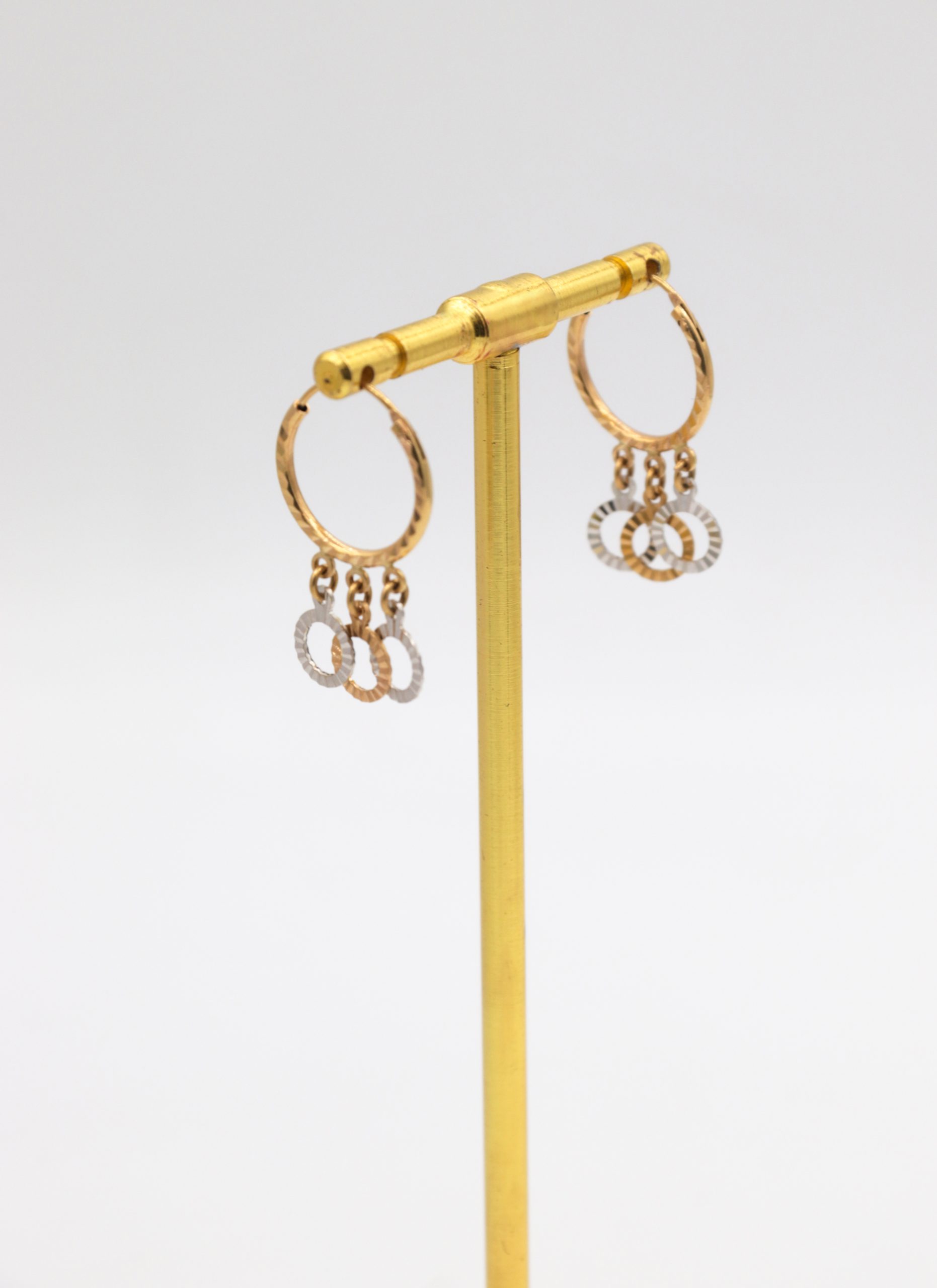 گوشواره های آویزی ساخته شده از طلای 18 عیار، جلوه ای درخشان و چشمگیر دارند.