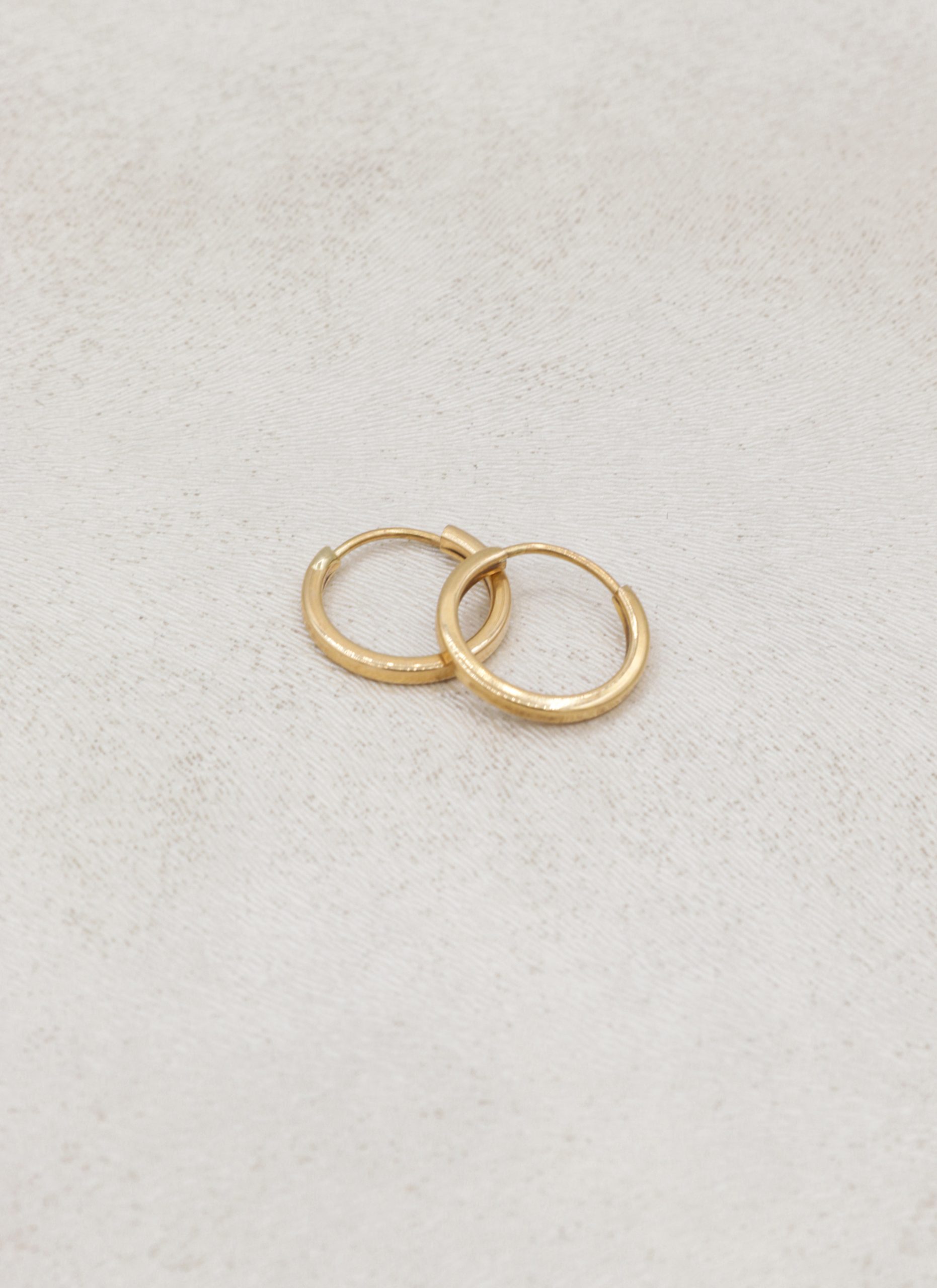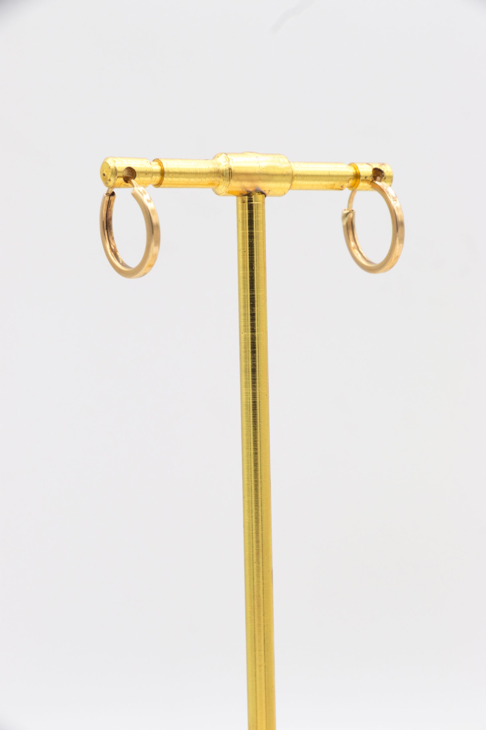 گوشواره های حلقه ای ساخته شده از طلای 18 عیار، جلوه ای درخشان و چشمگیر دارند.