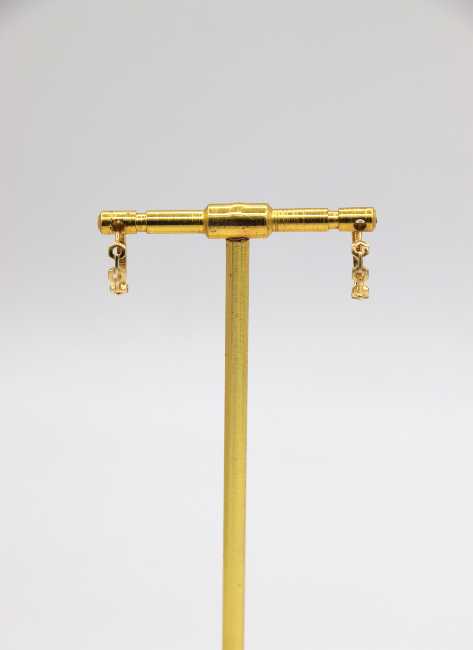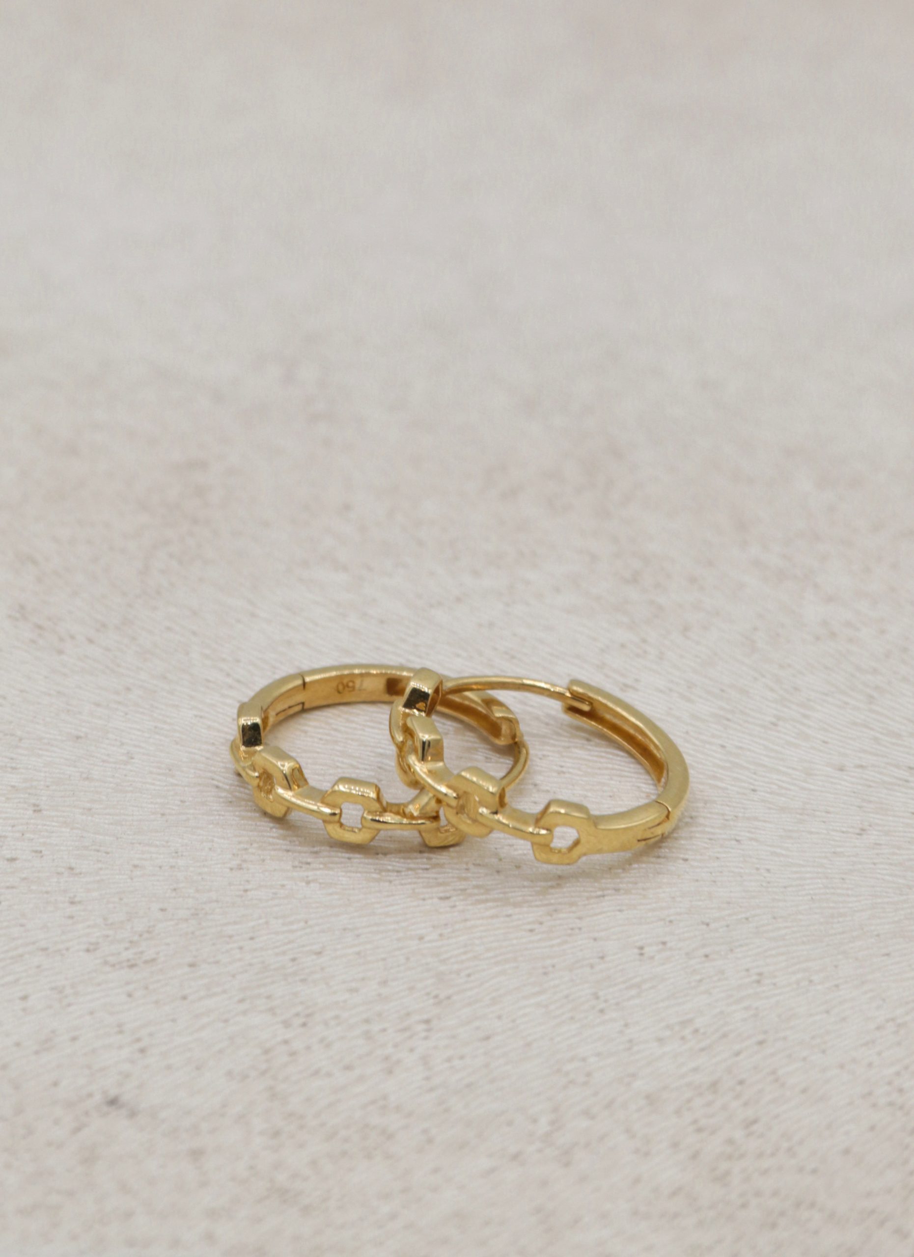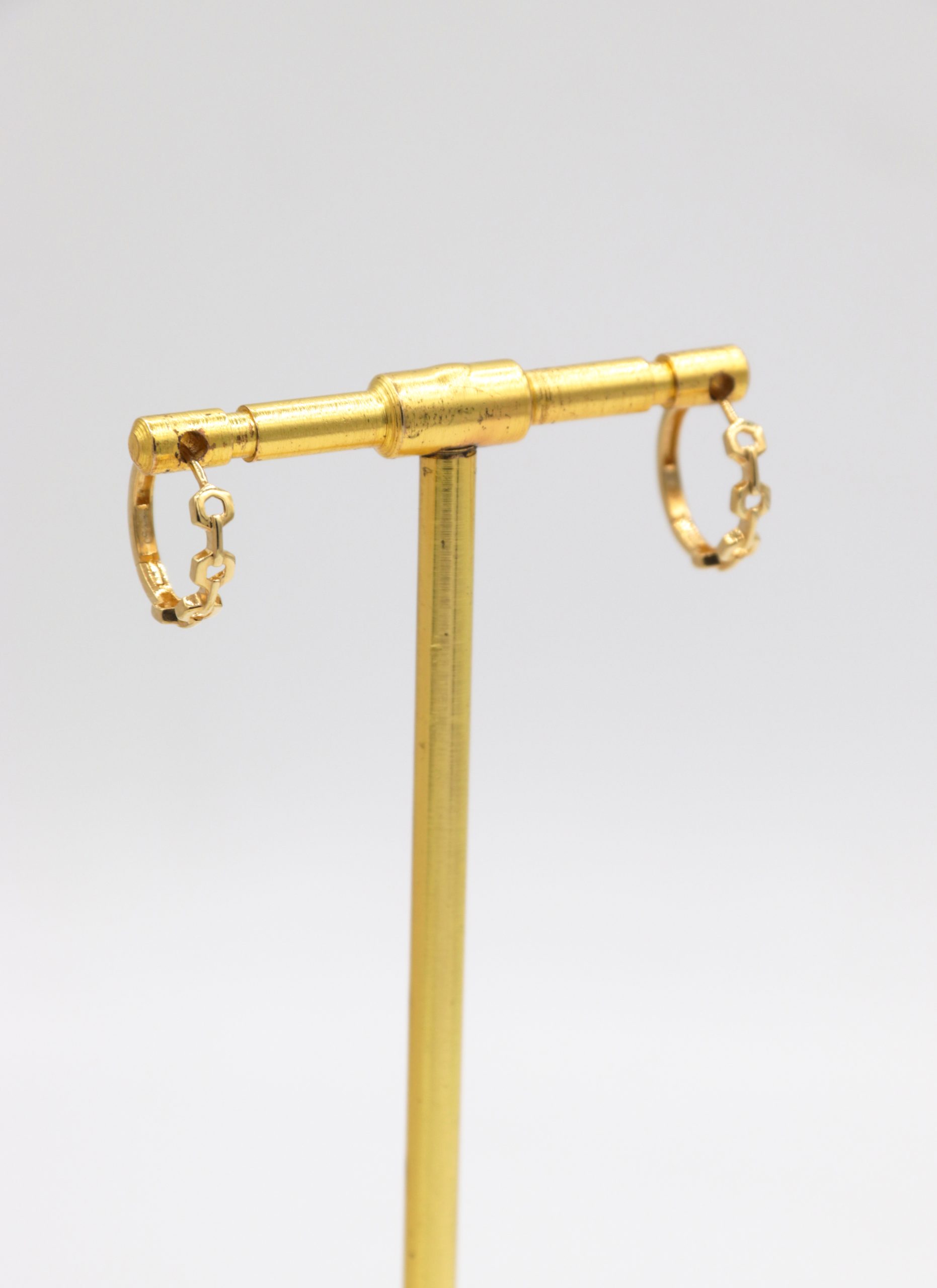 گوشواره های هندسی ساخته شده از طلای 18 عیار، جلوه ای درخشان و چشمگیر دارند.