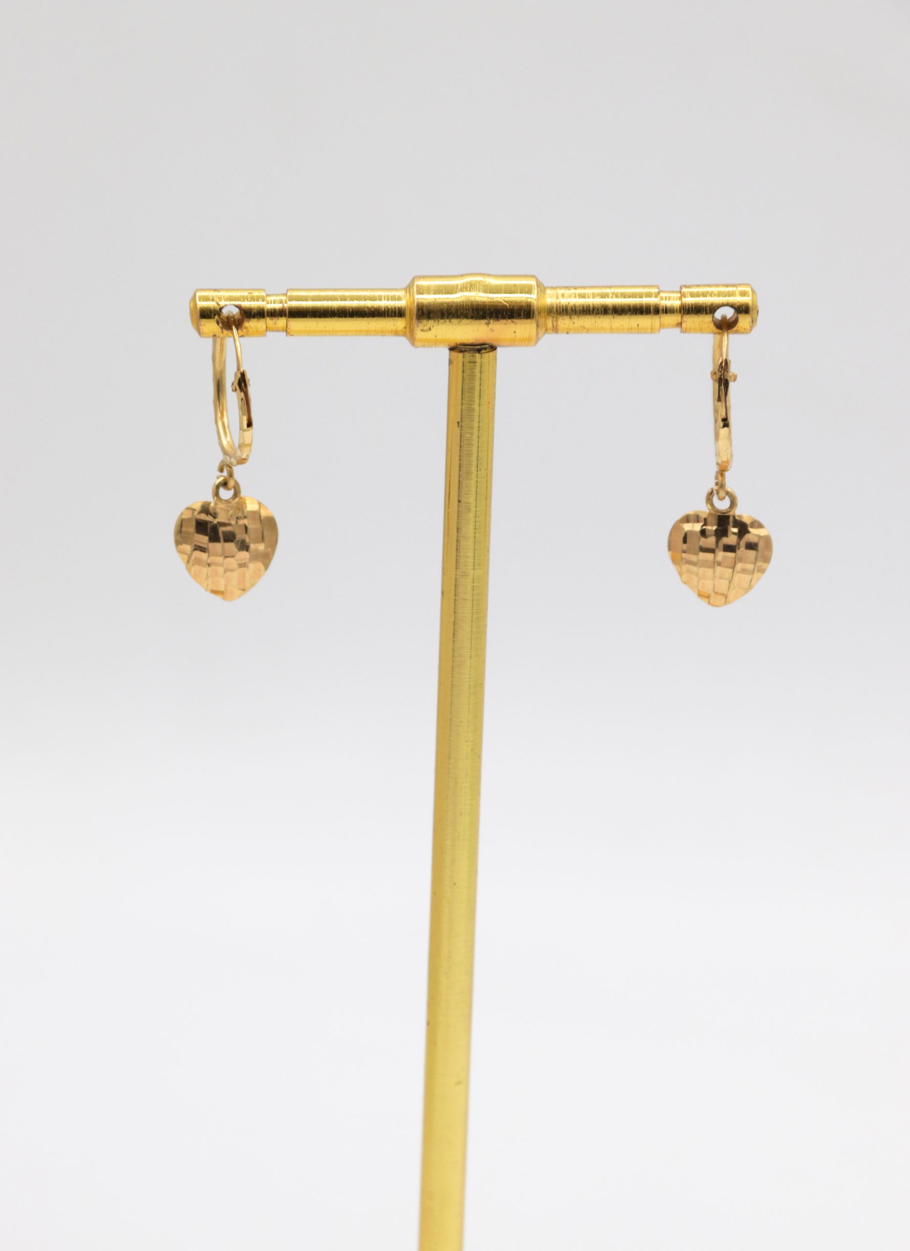 گوشواره های آویز قلب شده از طلای 18 عیار، جلوه ای درخشان و چشمگیر دارند.