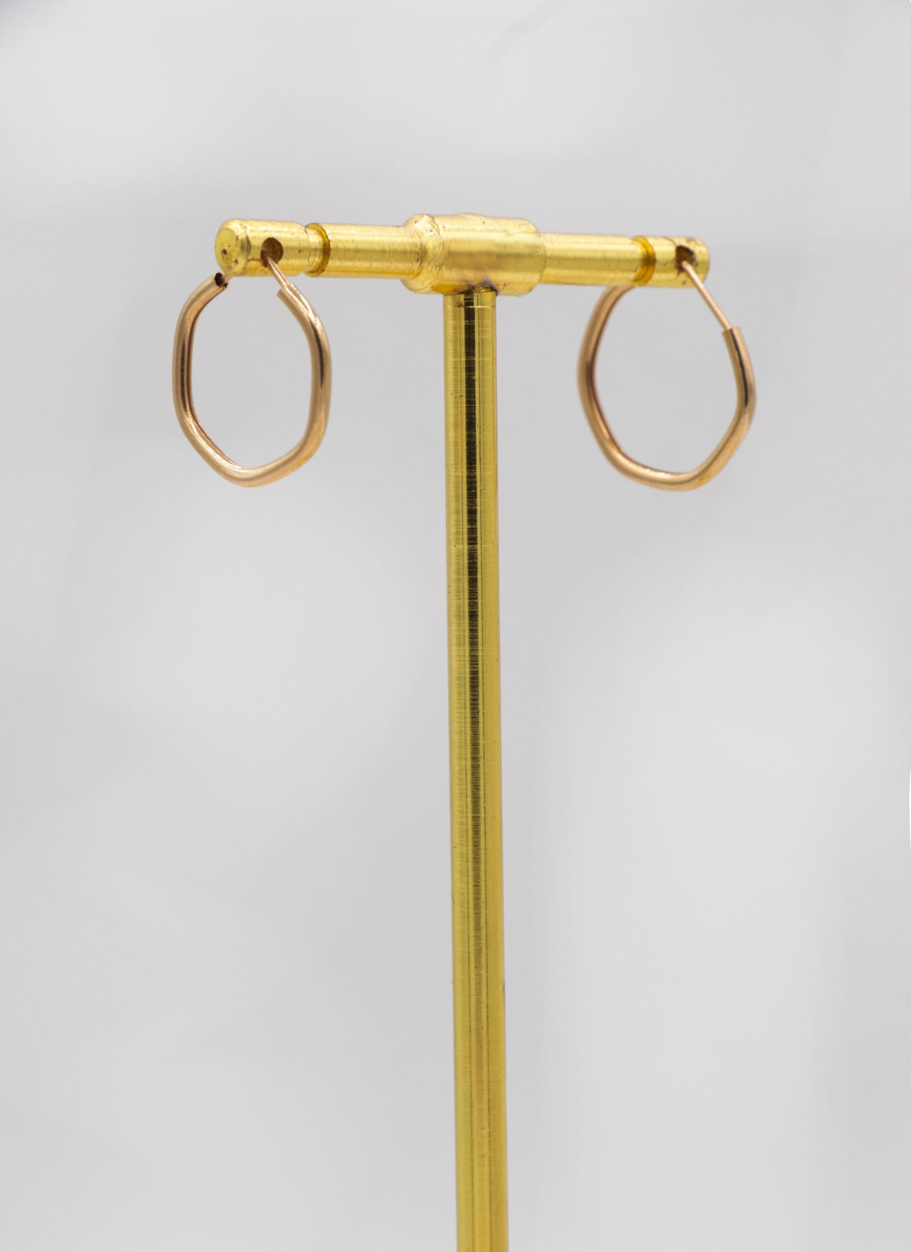 گوشواره های حلقه ای شیش ضلعی ساخته شده از طلای 18 عیار، جلوه ای درخشان و چشمگیر دارند.