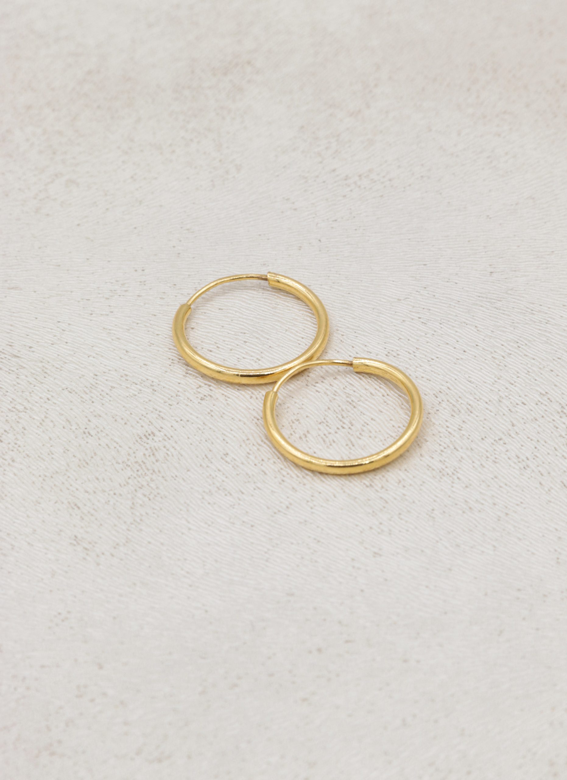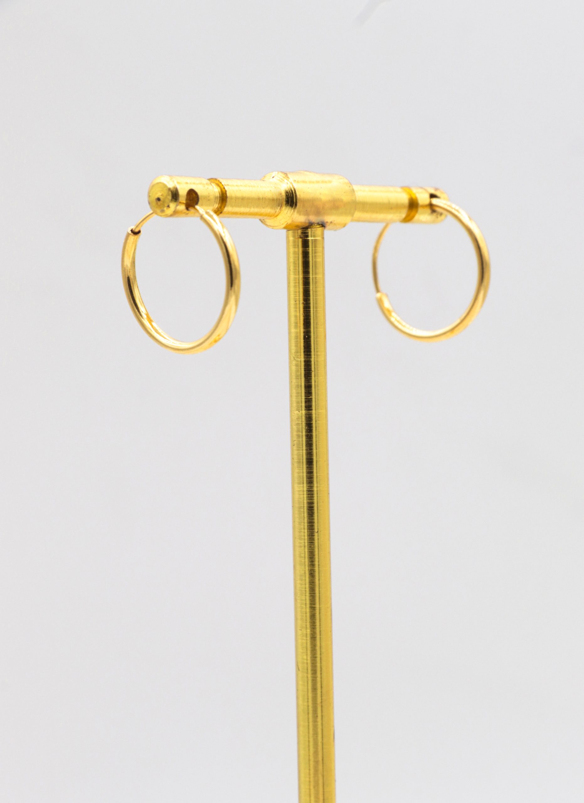 گوشواره های حلقه ای ساخته شده از طلای 18 عیار، جلوه ای درخشان و چشمگیر دارند.