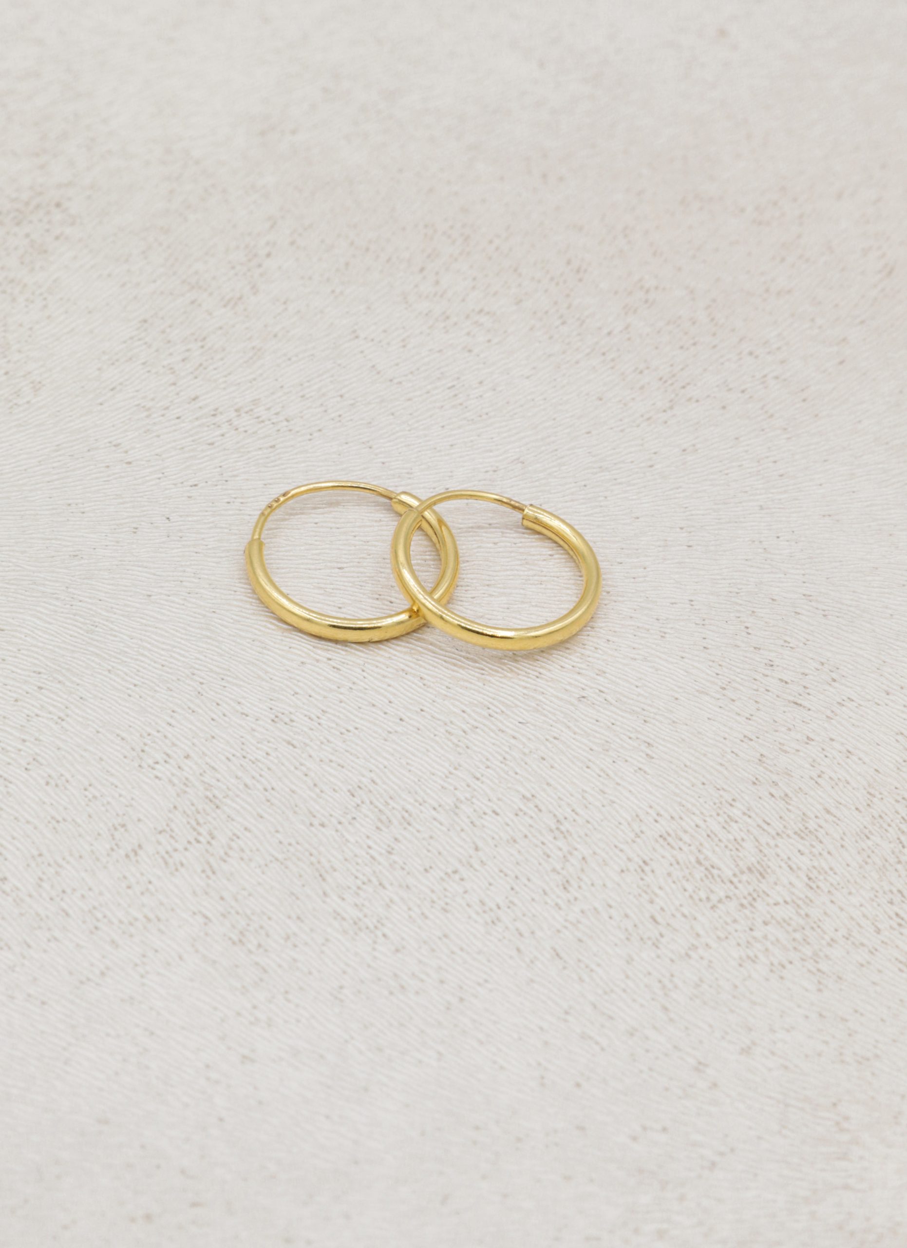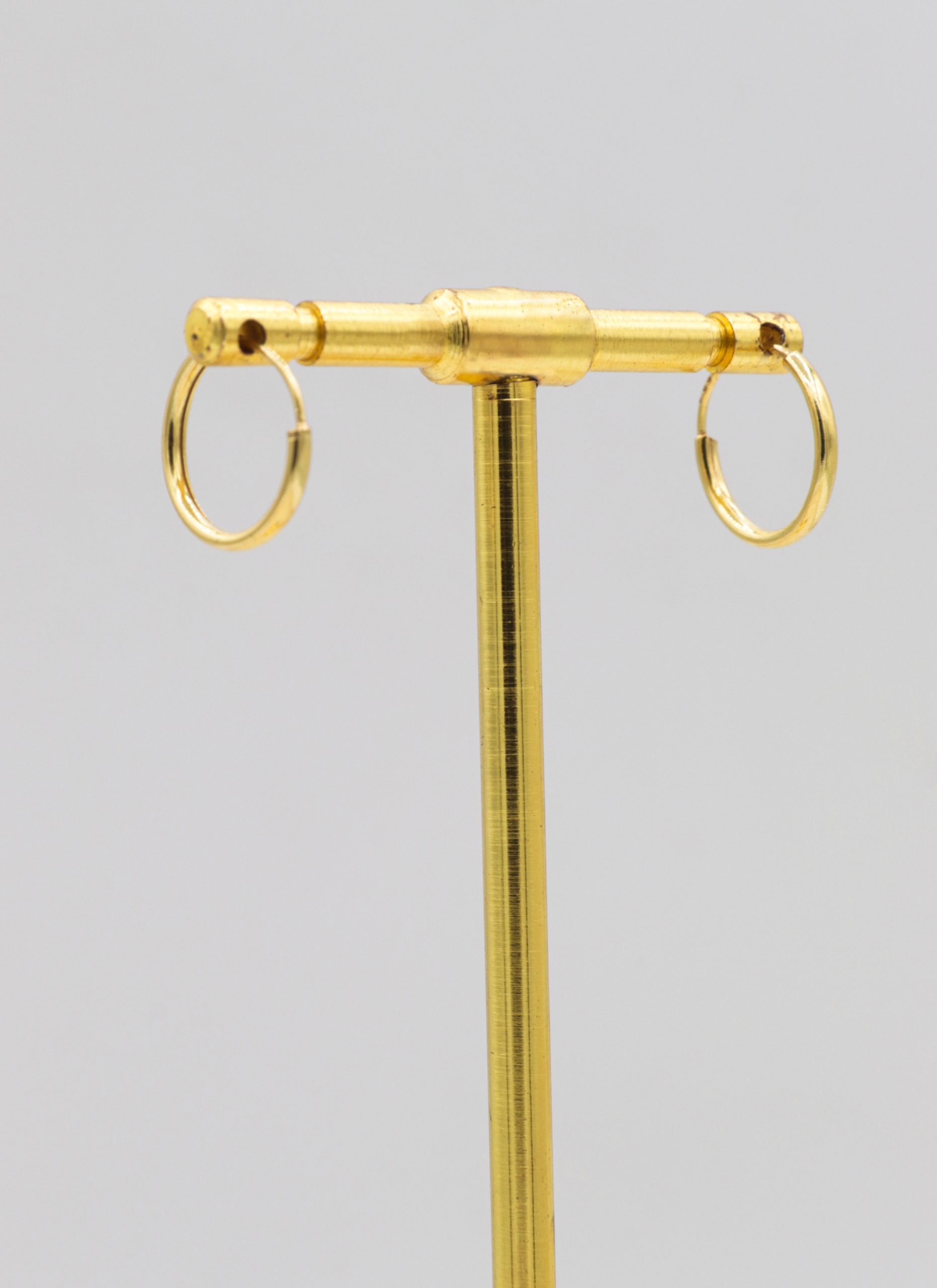 گوشواره های حلقه ای ساخته شده از طلای 18 عیار، جلوه ای درخشان و چشمگیر دارند.