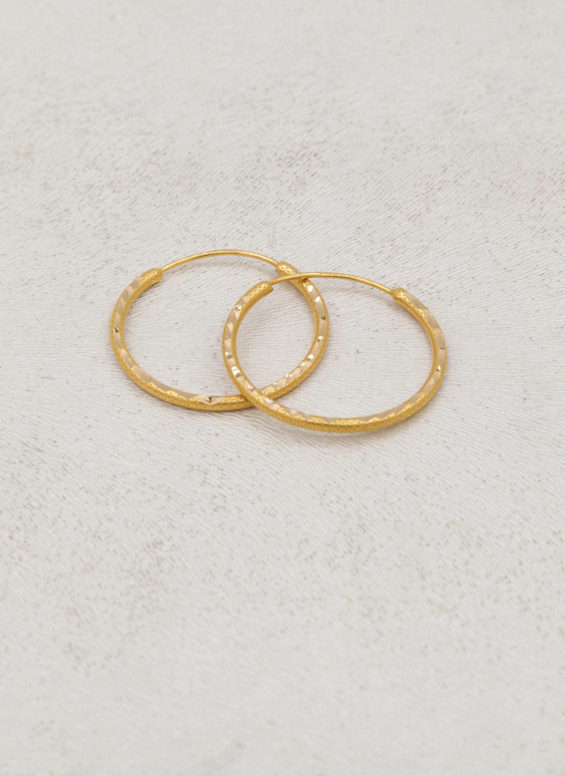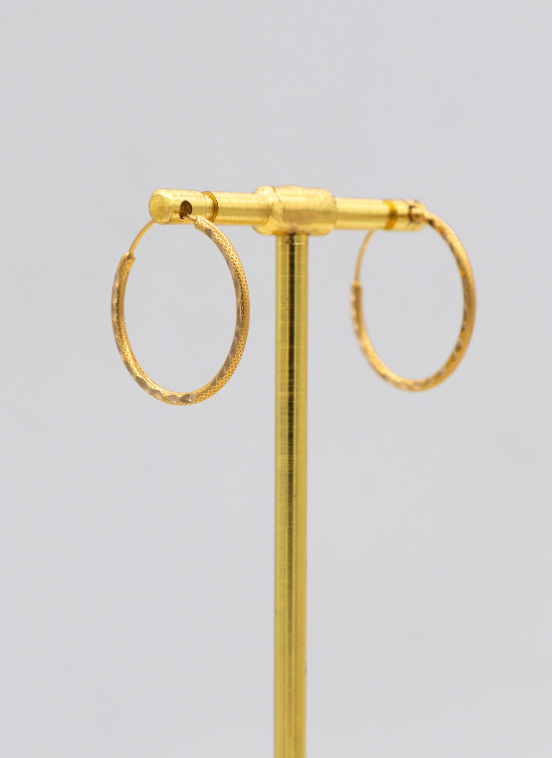 گوشواره های حلقه ایزیرخاکی ساخته شده از طلای 18 عیار، جلوه ای درخشان و چشمگیر دارند.